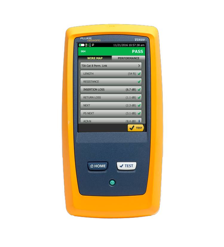 机构认证和认可、满足CAT 8(8类线缆)现场测试标准所有要求的现场测试仪。DSX-8000是Versiv™电缆