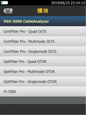 2、在更改测试屏幕上,选择要更改的光纤测试,然后轻触编辑。或者,如要设置新的光纤测试,则轻触新测试。如果未安装模块,模块屏幕显示,轻触正确的 CertiFiber Pro 模块。