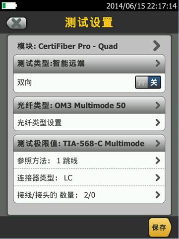 根据实际被测的链路选择相关的线缆类线,如:单模还是多模?若是单模的话是OS1还是OS2?若是多模的话是OM1还是OM2/3/4/5?等等。
