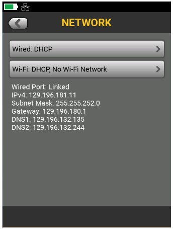 要使用此功能,你必须首先在Tools(工具), network中将Versiv连接到有线或无线网络。一代的Versiv单元需要添加一个wifi适配器来连接到无线网络,或者可以使用Versiv主单元左侧的RJ45端口连接来连接到有线网络。连接后,IP地址将显示在“工具”和“网络”屏幕中。
